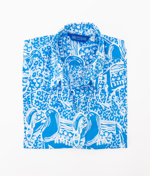 Bali Short-Sleeve Shirt in Rum Jungle Blurry Blue