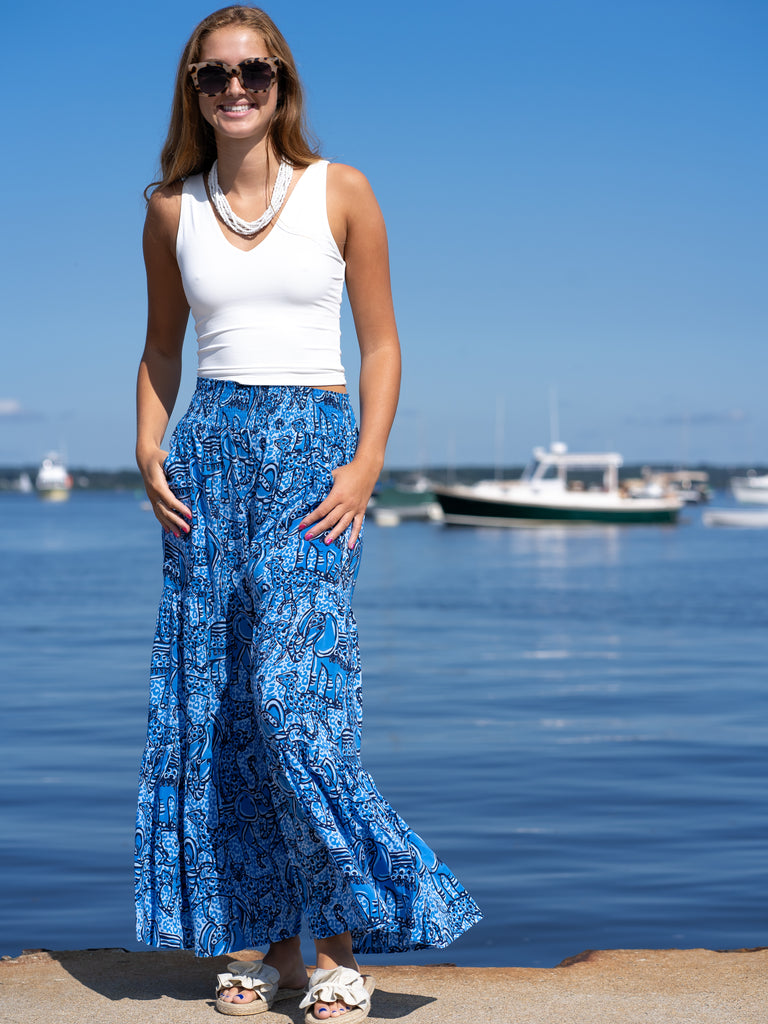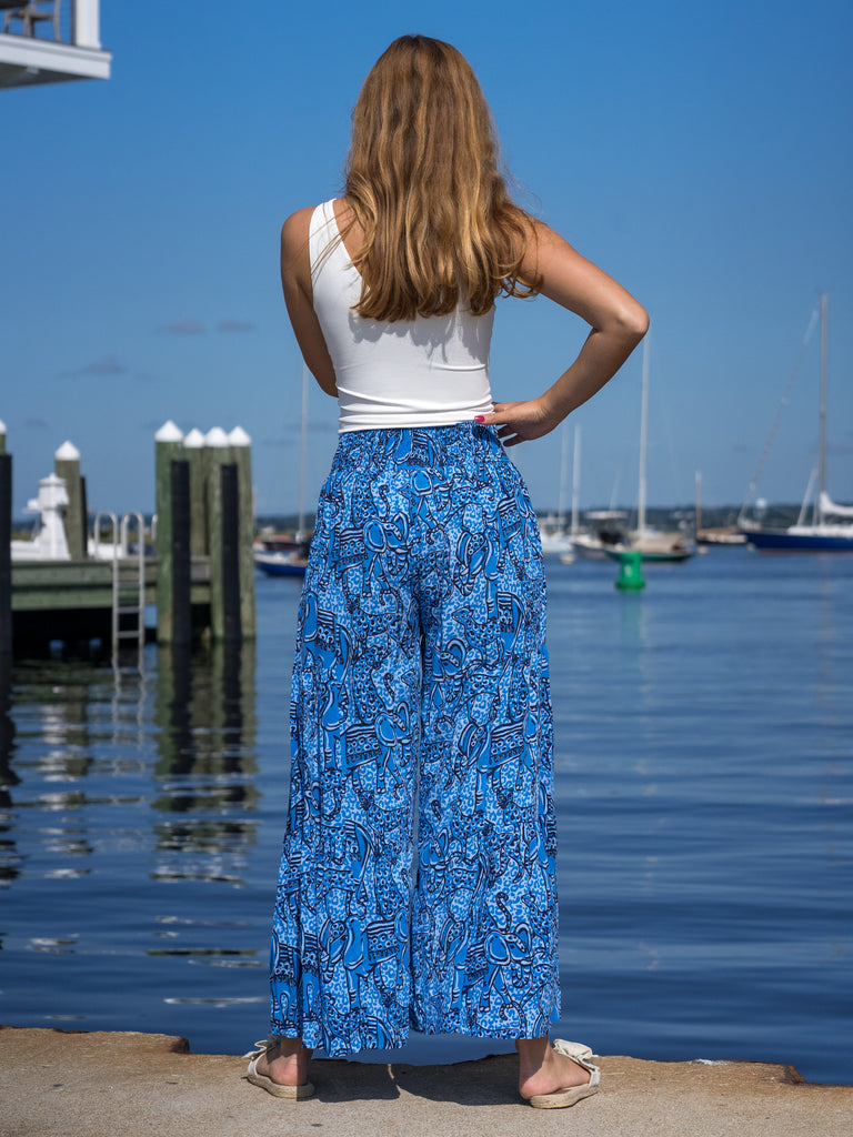 Three IslandsThese stunning, wide-leg pants boast a gorgeous, flowy silhouette. A wide, elastic waist allows the pants to work for a range of sizes. Pair them with a fitted tank, tee and flats for a fun day look, or a slim cut top or sweater and strappy heels for night.